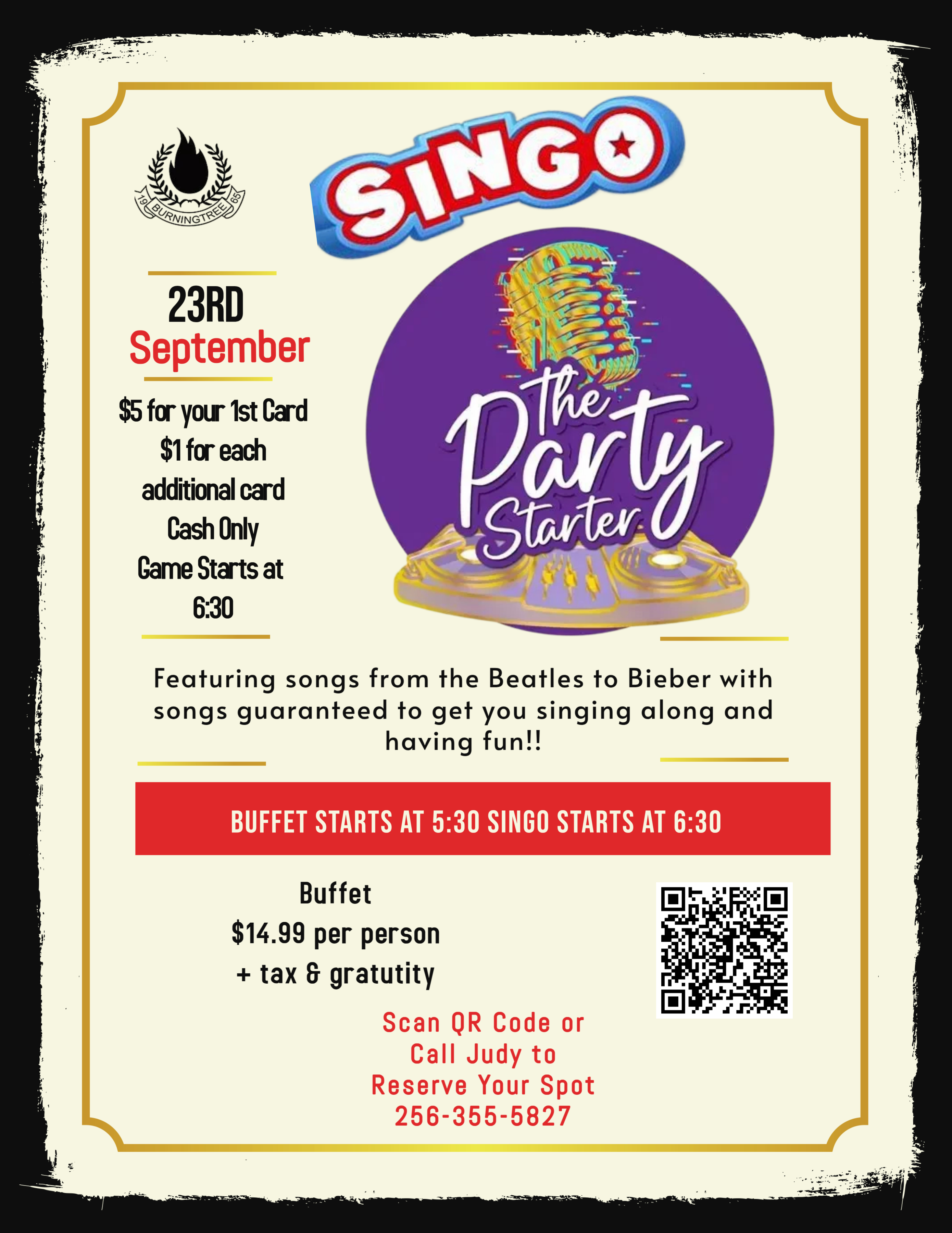 Come Party With Us!  If these songs don't have you singing along then the drink specials will! Buffet opens at 5:30 and the games start at 6:30.